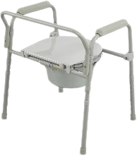Prezentujemy Państwu krzesła toaletowe ,które spełniają  funkcję przenośnej toalety. Możemy go używać zarówno przy łóżku pacjenta, jak i w łazience. W  łazience po wyjęciu wiaderka krzesło służy także jako nadstawka na toaletę, pozwalając użytkownikowi siadać wyżej, dzięki czemu jest mu dużo łatwiej później wstać. Krzesełko jest bardzo lekkie ponieważ rama jest wykonana z aluminium i posiada możliwość składania się do małych rozmiarów (składane boki). Jest łatwe  w czyszczeniu.